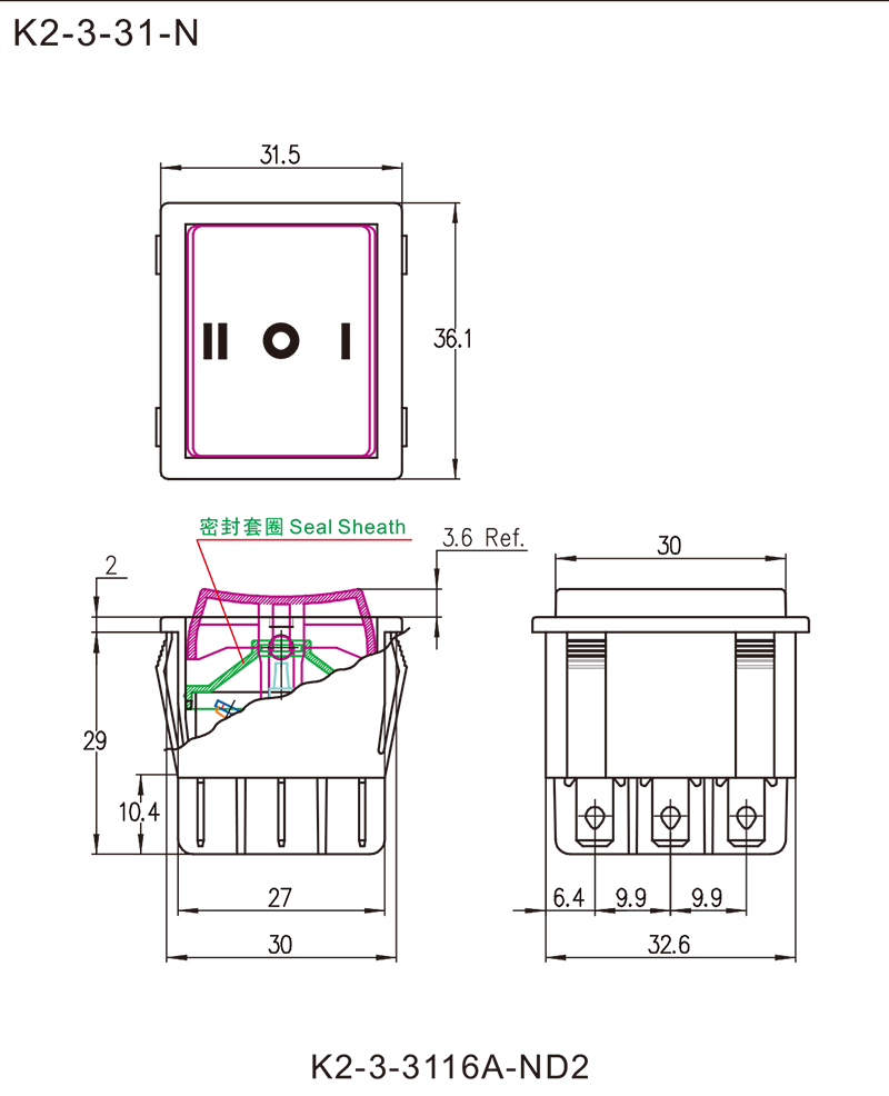 K2-3 series (Dustproof and Waterproof) Rocker Switches