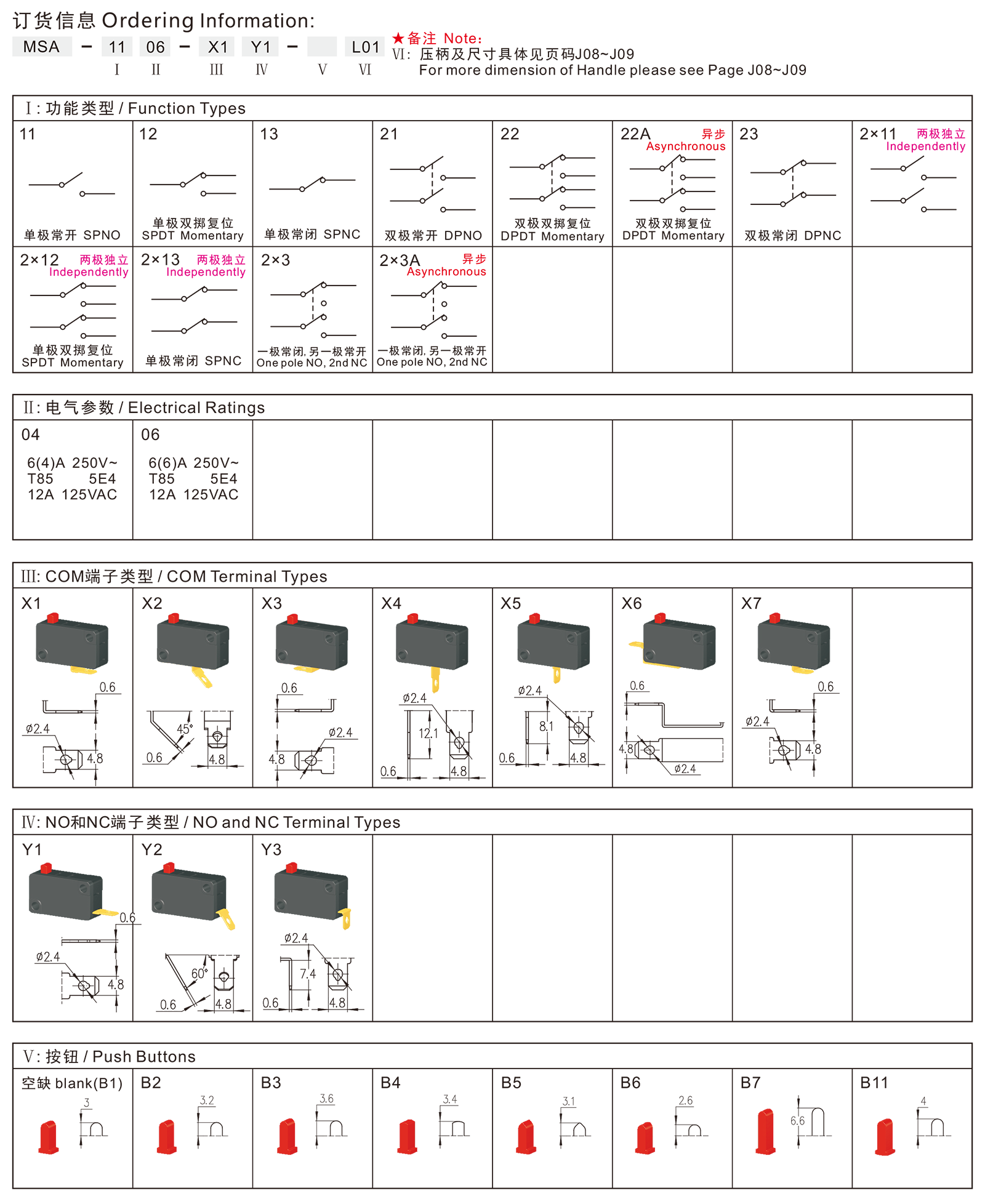 ◆MSA(DA7-6/1, DA7-6/2)?series are one standard type micro switches, commonly for use in low rated AC and DC powe r-tools or gardening tools, such as Electric Tackers, Electric S prayers, Grass Trimmers, Hedge Trimmers, etc.
