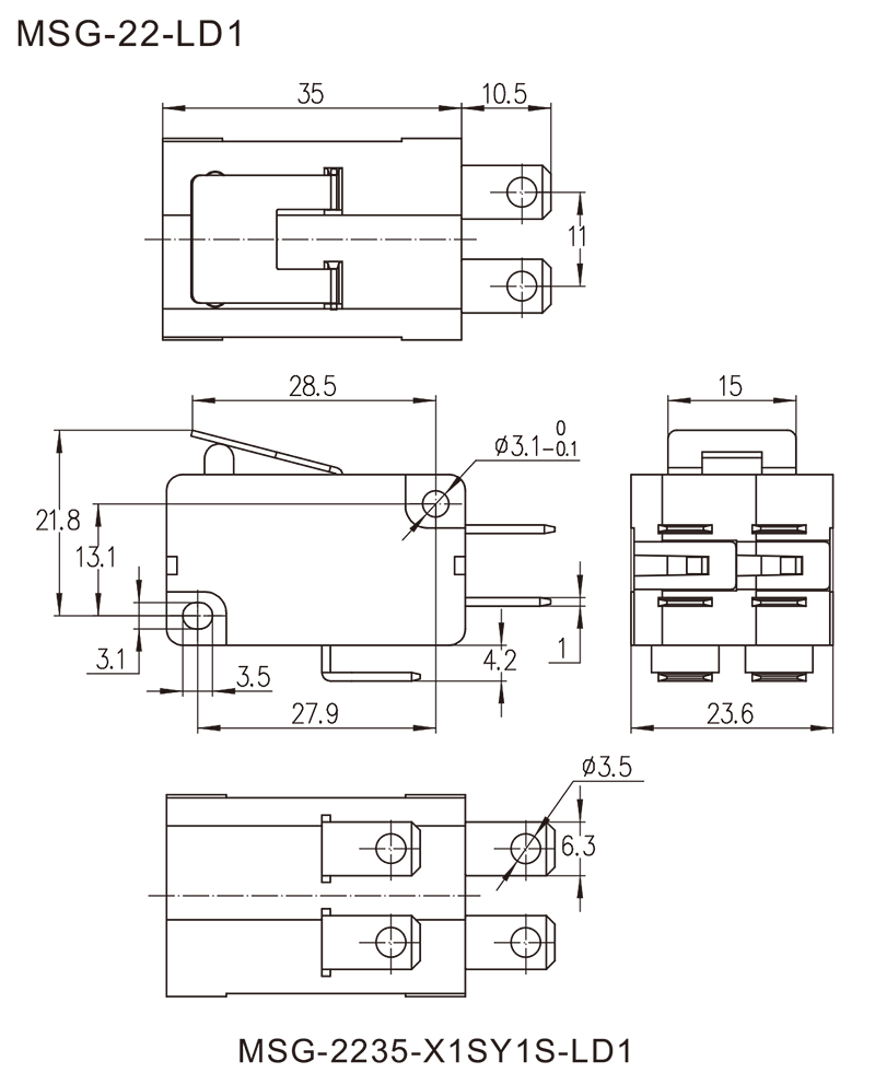 →插片端子 Plug-in terminals 6.3×0.8mm
