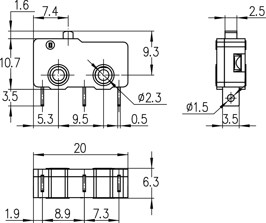 →開關(guān)操作力選擇范圍 Operating force range2N ~5N