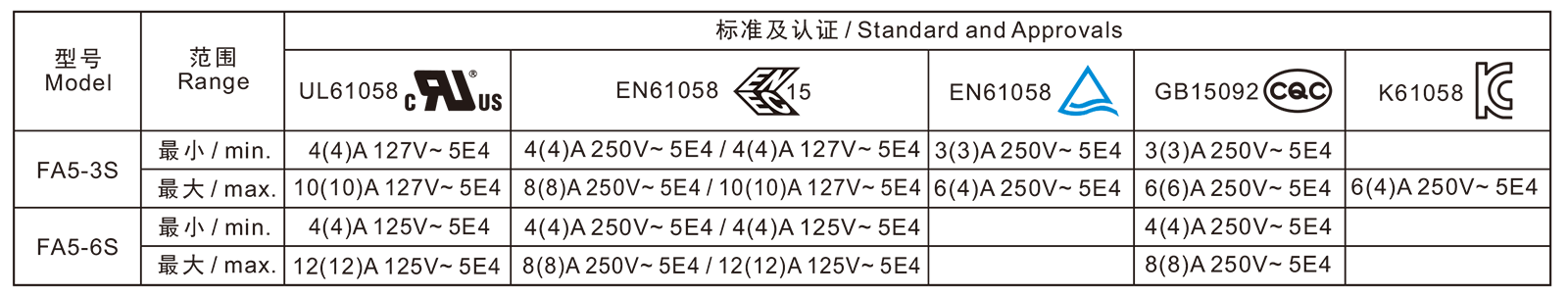 電氣參數(shù)和認(rèn)證 Electric Rating and Certification