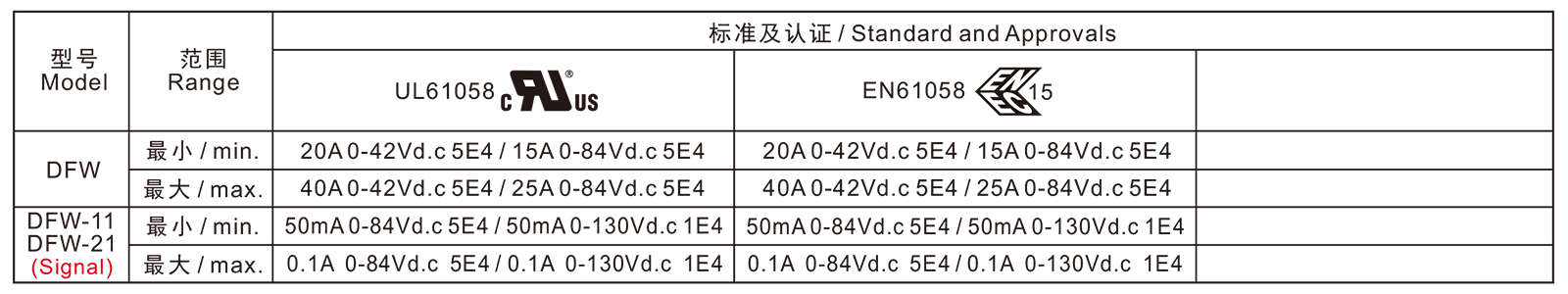 電氣參數(shù)和認證 Electric Rating and Certification