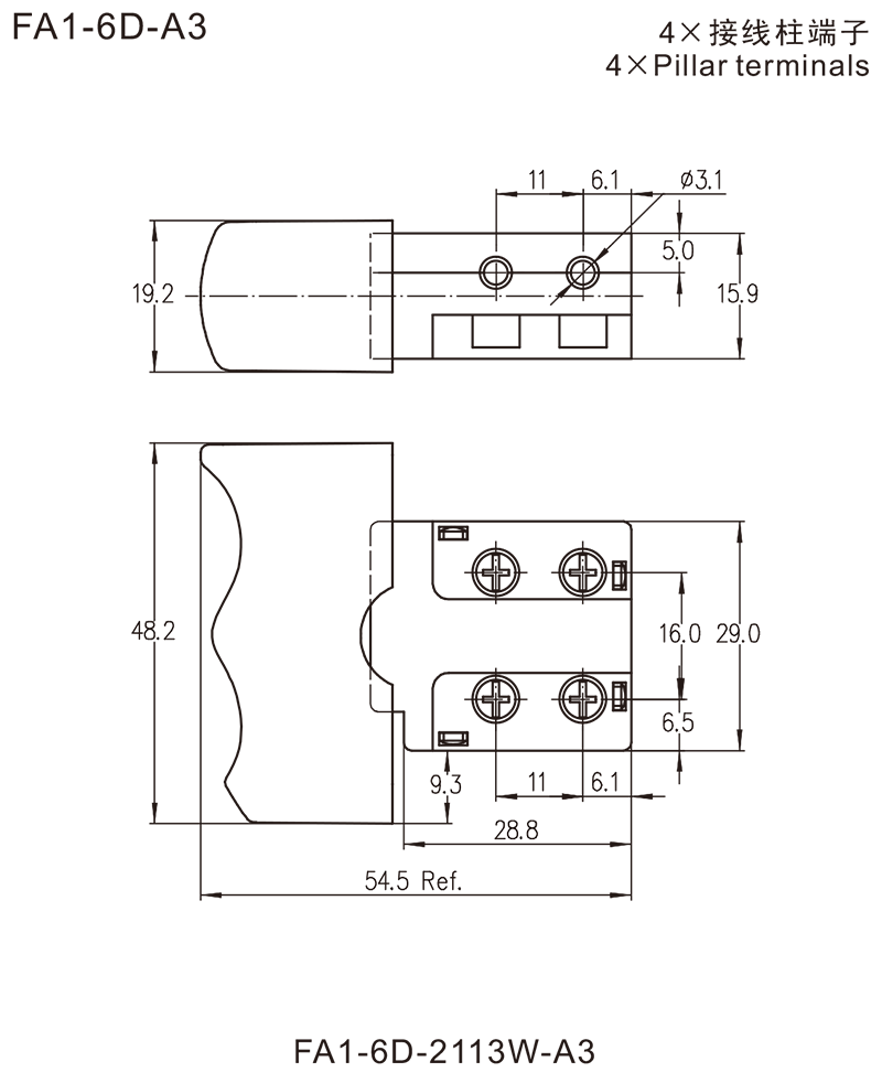 →2×接線柱端子Pillar terminalsφ=2.8mm