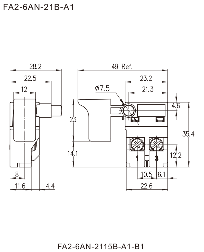 FA2-6AN series are one general type trigger switch, which is dustproof improved version of FA2-6A series, commonly for used in portable power tools and gerdening tools such as Electric Drills, Marble Cutters, Circular Saws, Electric Routers, Belt Sanders, Electric Planers, Electric Chain Saw, etc.