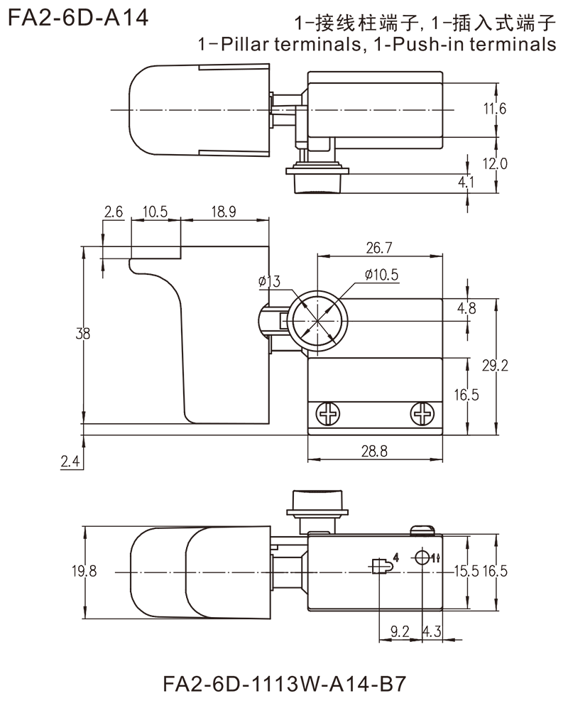 FA2-6D, FA2-6DX, FA2-6DY防塵扳機開關