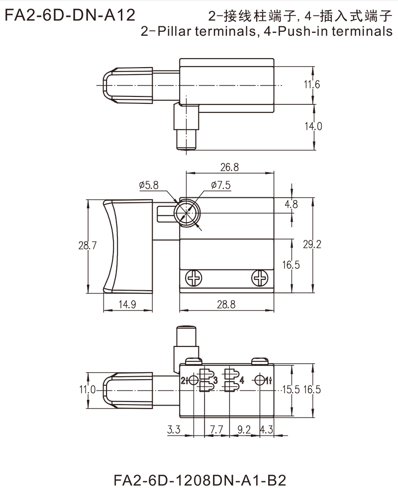FA2-6D, FA2-6DX, FA2-6DY防塵扳機開關
