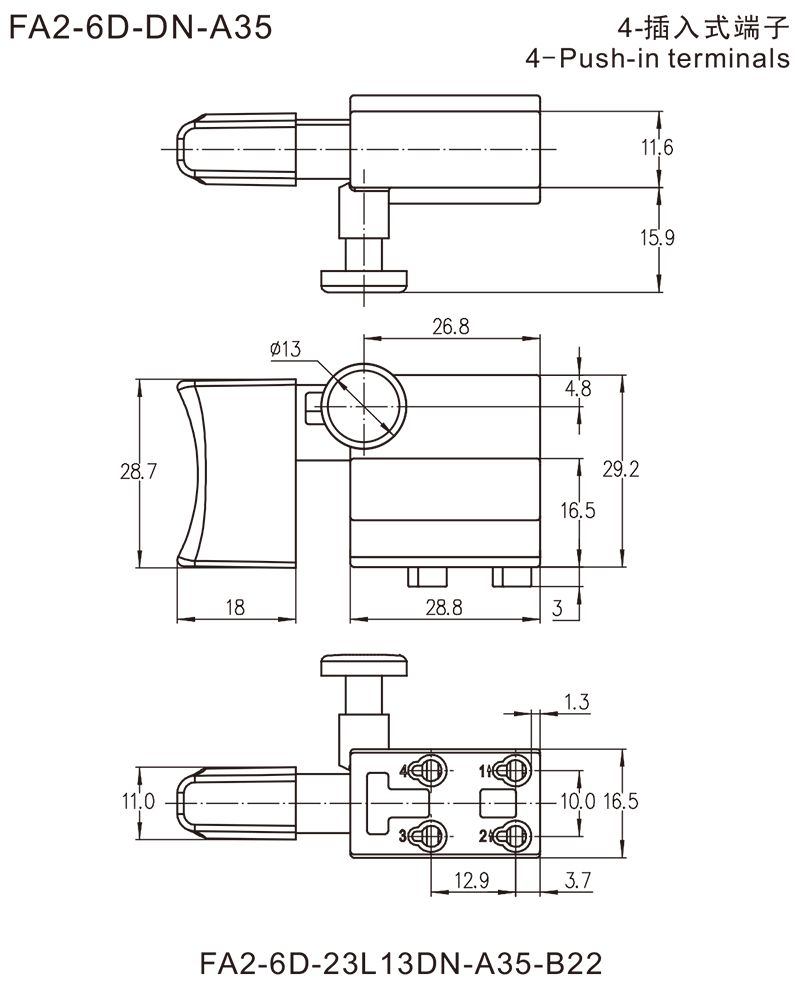 →插入式端子可插入沾錫導線,帶插片端子導線或銅包頭導線