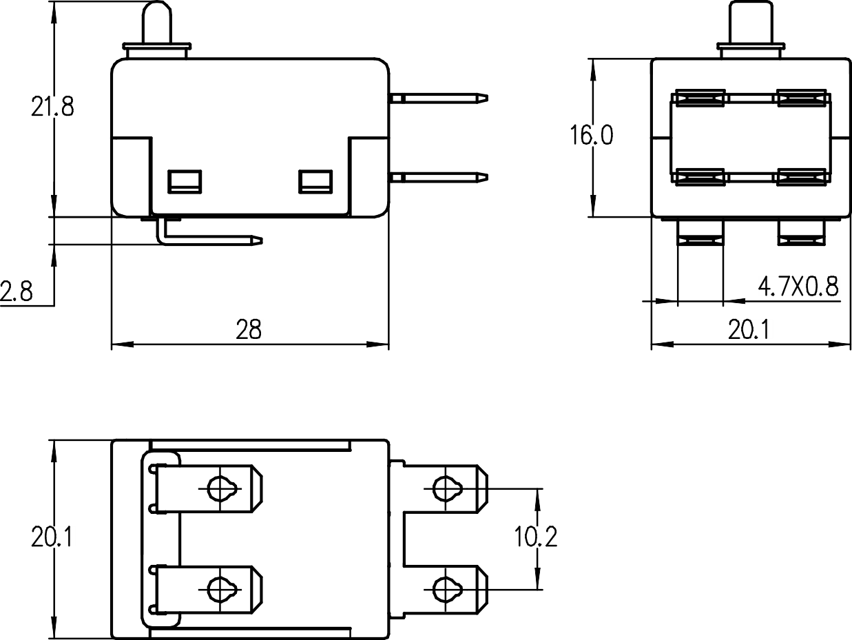 →焊接端子Soldering terminal 4.7 X0.8mm