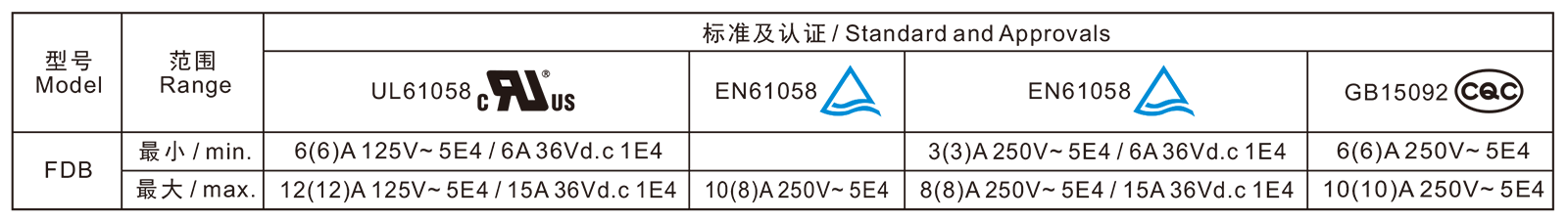 電氣參數和認證 Electric Rating and Certification
