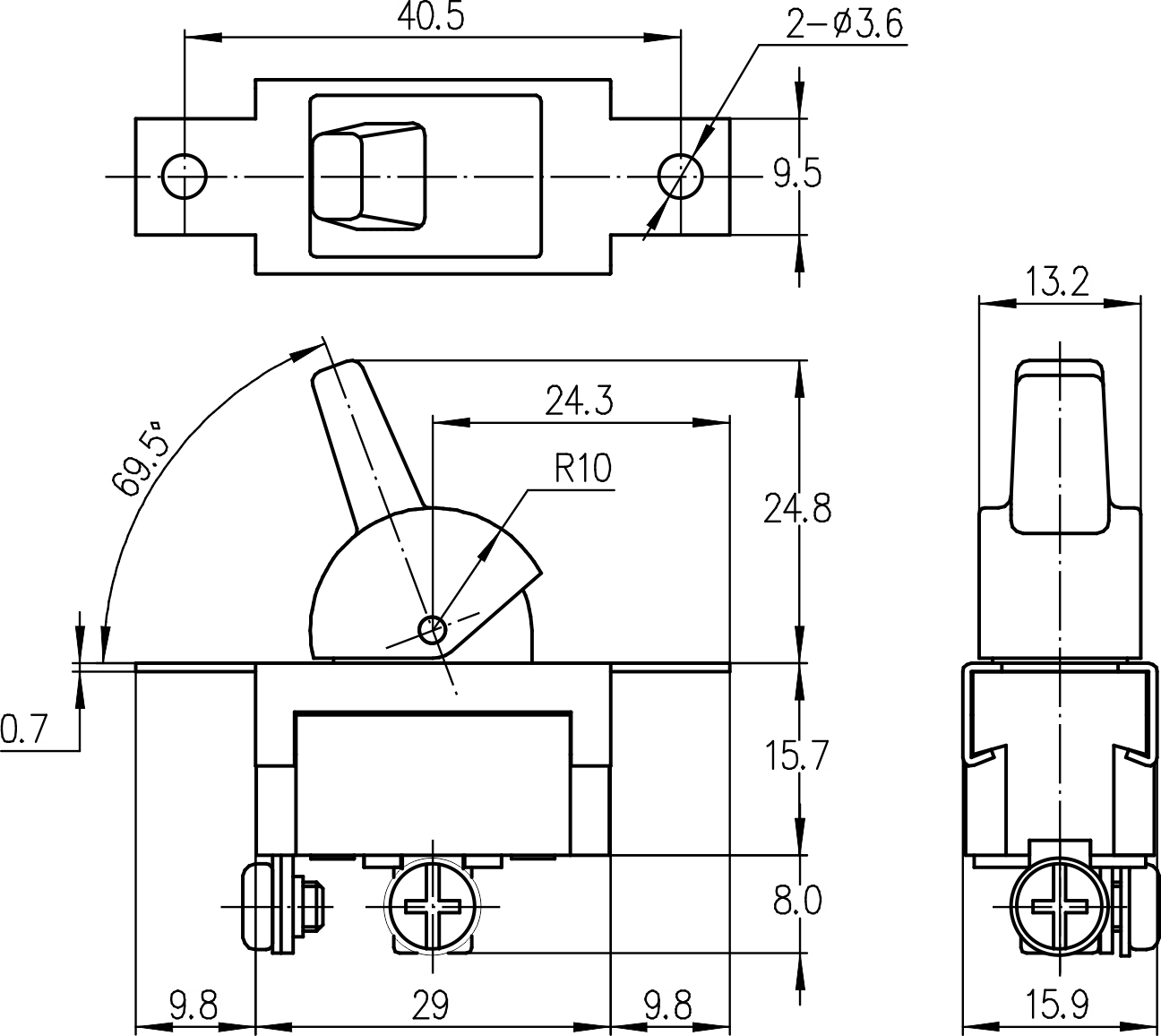 ◆可選帶以下功能 Optional with following function: →單極單擲 SPST (Single Pole Single Throw) →單極雙擲 SPDT (Single Pole Double Throw)