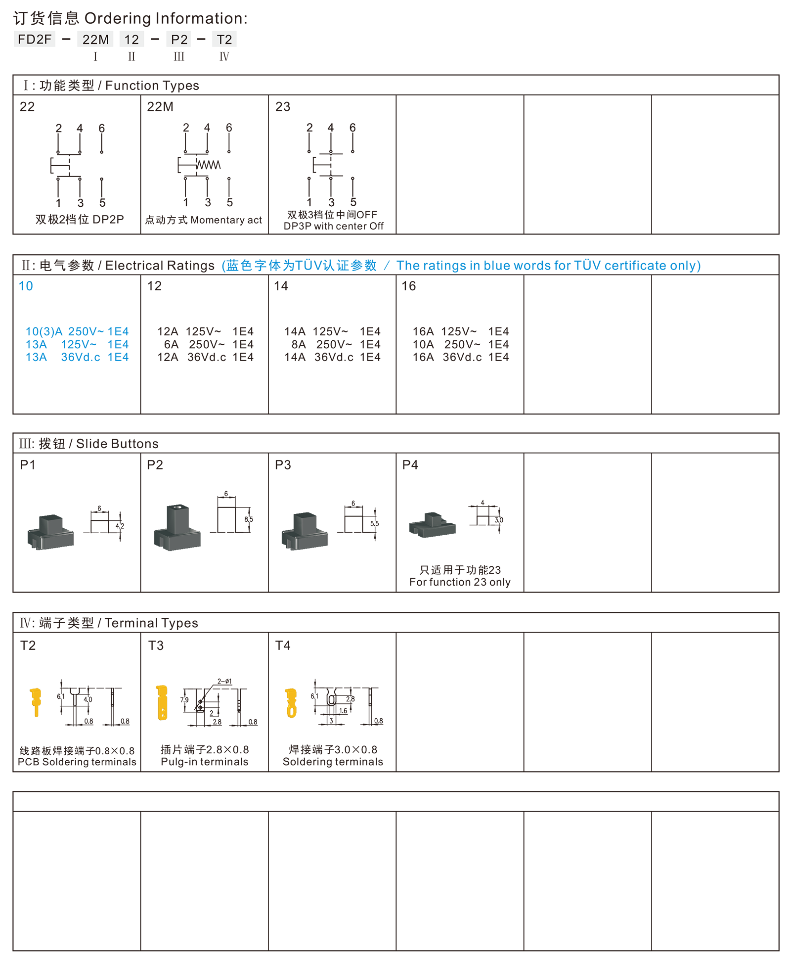 FD2F series Slide (Push-pull) Switches
