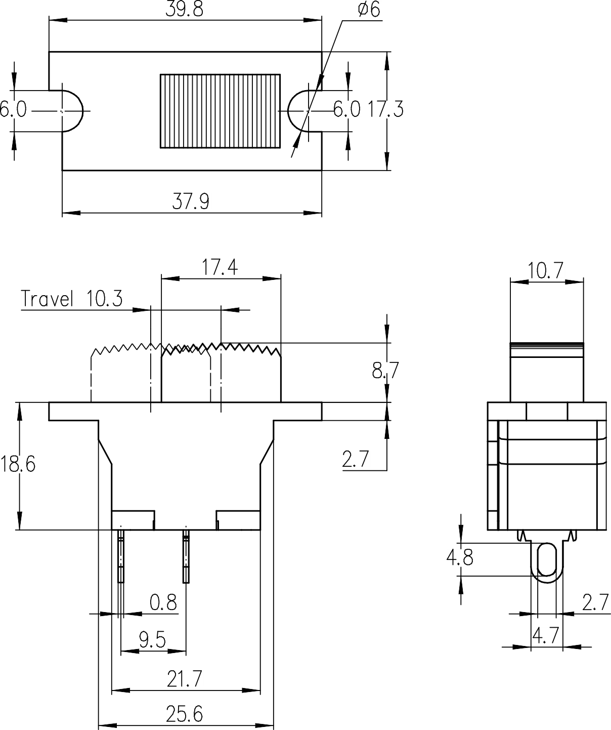 ◆JB17系列是一款專用型的滑動開關(guān),也叫推拉開關(guān)或推撥開關(guān),集成防塵功能,適用于小型的電動工具,如:砂光機、100mm和125mm角磨機等。
