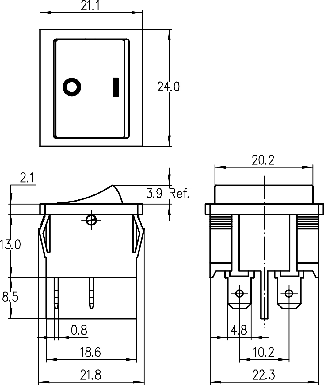 →插片端子 Plug-in terminals 4.8×0.8mm