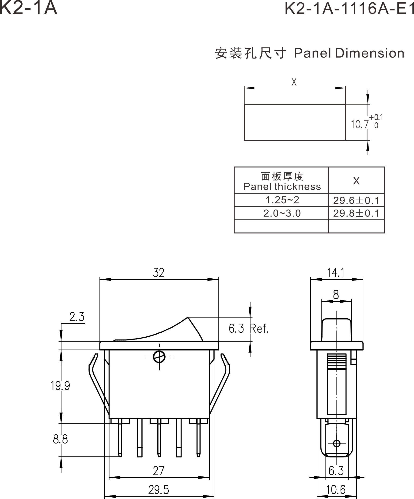 K2-1 series (Dustproof) Rocker Switches