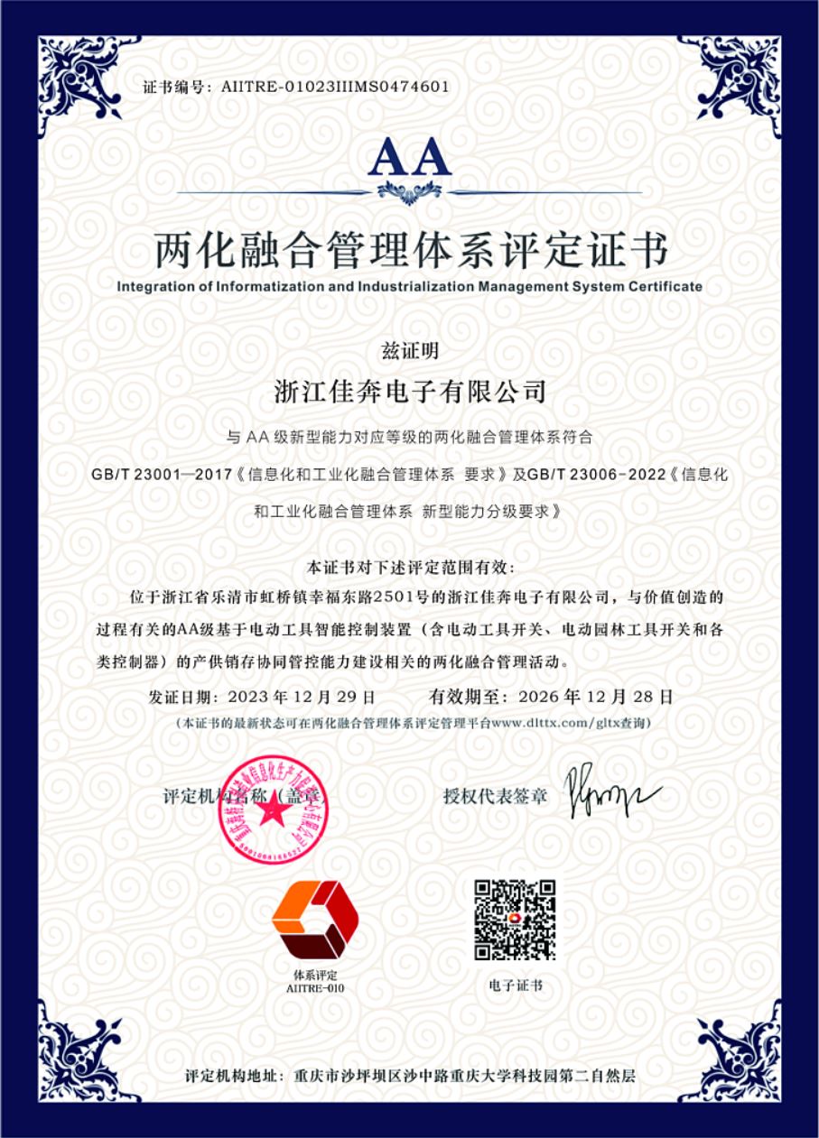 公司榮獲“兩化融合管理體系評(píng)定證書(shū)”!